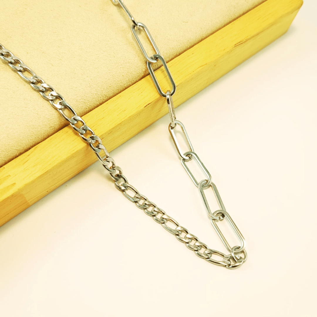 Collar plateado 45cm doble diseño de cadena