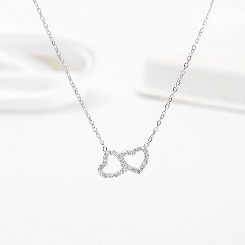 Gargantilla plateada dije 2 corazones pedrería