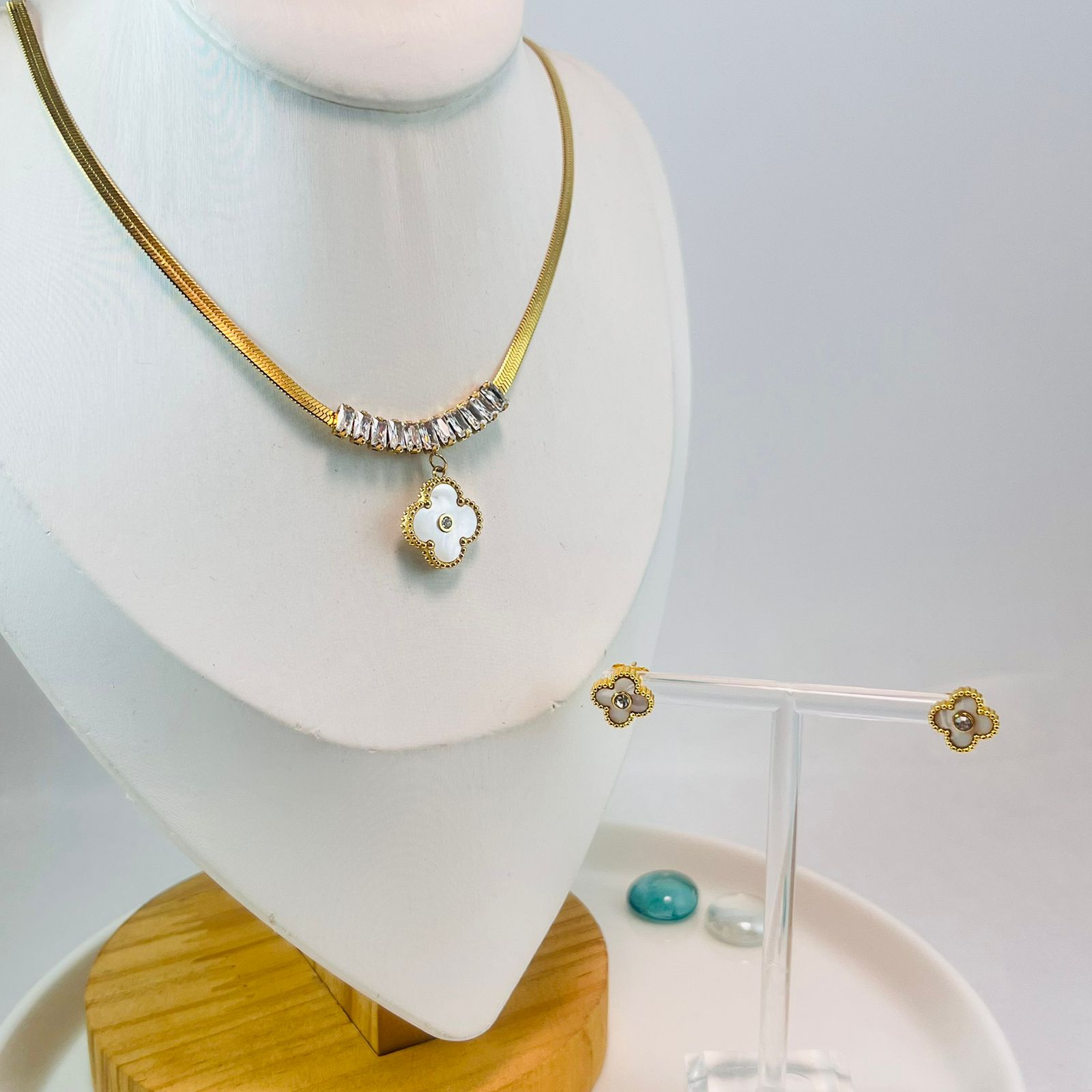 Set Dije y aretes piedra biselada 1.5cm